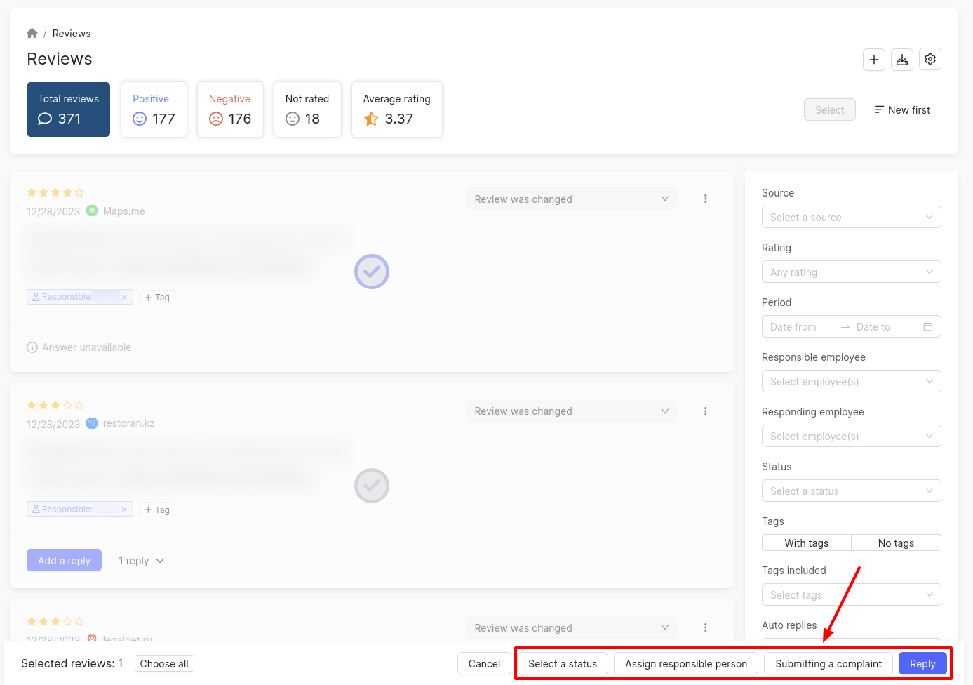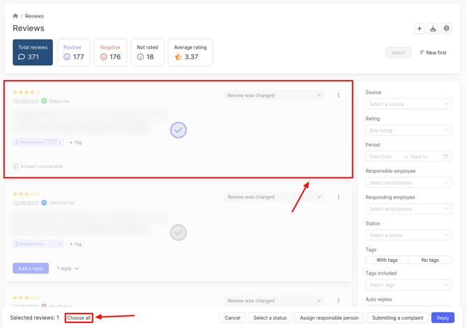 Then choose the reviews you need. If necessary, you can select all reviews displayed on the page.