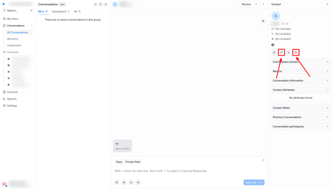 On the right side of the conversation, a sidebar displays brief information about the contact: name, email, phone number, and company name if these details are available.