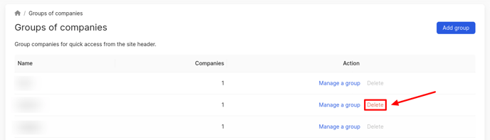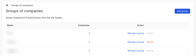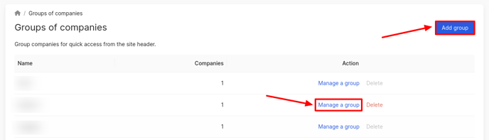 The Groups of Companies page will open, which presents a the list of groups in the form of a table with the following columns: