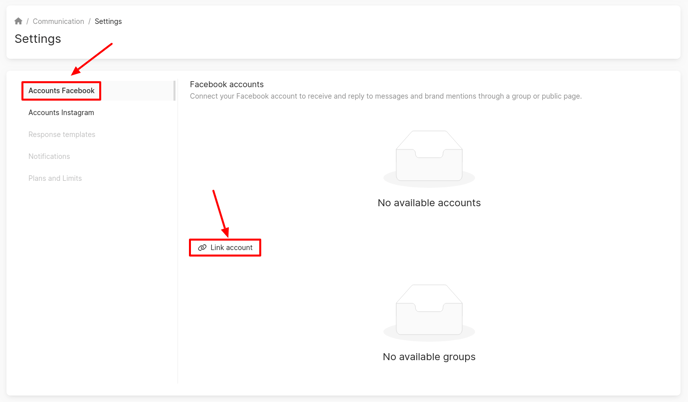 In the menu, click on the Accounts Facebook field. Then click on Link Account.