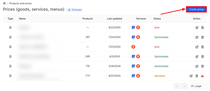 - On Yandex's side, the publication of products and prices can take up to 2 days.