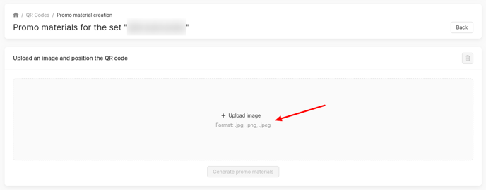 On the Generated sets of QR codes page, you can add created QR codes to your company's promotional materials. To do this, click on the three dots and select Create promotional materials.