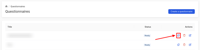If you need to create a survey with the same settings as an already created survey, click on the copy icon next to that survey. A Create a questionnaire page will open with all the configured fields. You can make changes to the settings if necessary.