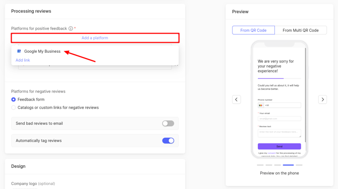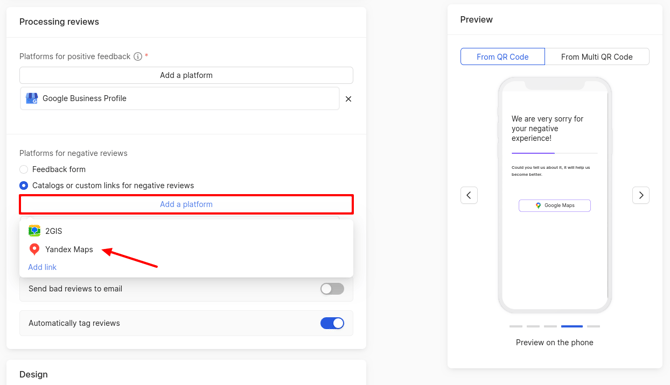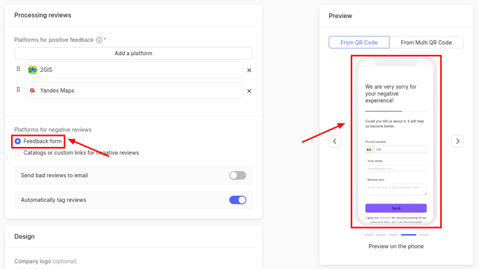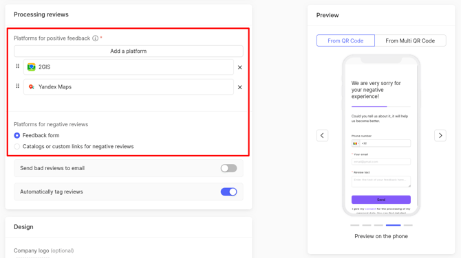 Next, choose which platforms will receive positive feedback from clients and which will receive negative feedback.