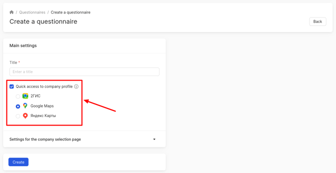 After checking the box for Quick access to the company profile, select one directory that will be opened to clients for leaving a review.