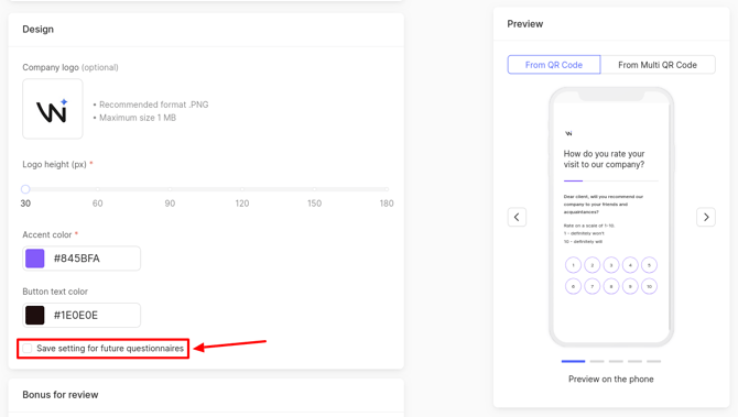 After making the settings, you can save them for future QR codes, if necessary. Check the corresponding box.