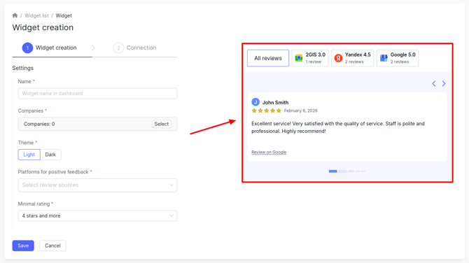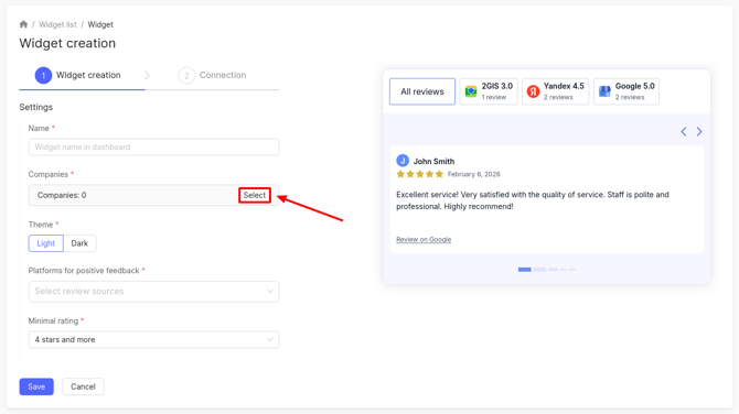 Select the companies whose reviews will be displayed in the widget.