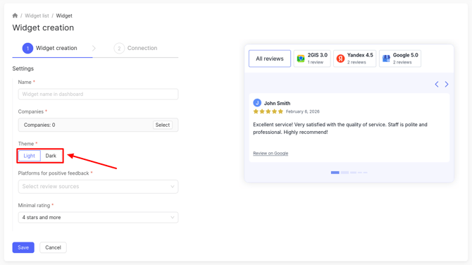 Next, choose the widget theme: light or dark.