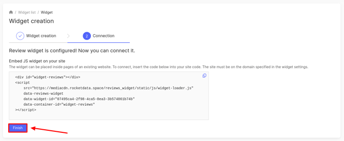 After connecting the widget, click Finish.