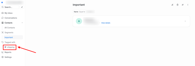 To filter contacts by tags, go to the Contacts section in the menu and select the desired tag.