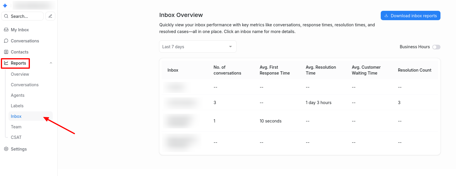 This report allows you to track the performance of a specific inbox and evaluate the effectiveness of responses and resolutions, helping to improve service quality.