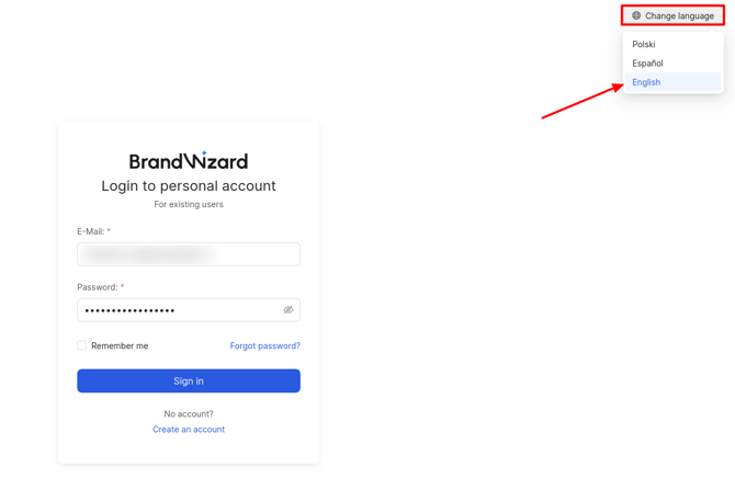 To enter the BrandWizard account, follow the link https://go.brandwizard.io. Then enter your Email and password that were specified during account registration, and click on Sign In.
