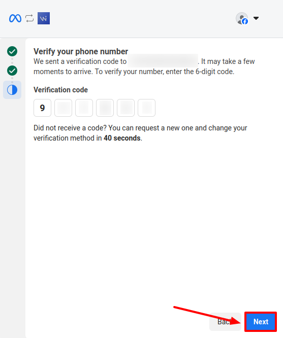 Enter the verification code and click Next.