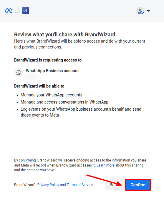 Review what you are sharing with the BrandWizard application and click Confirm.