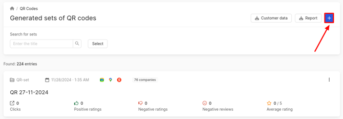On the Generated sets of QR Codes page that opens, click on the button with a plus sign. The Create QR Code set page will open.