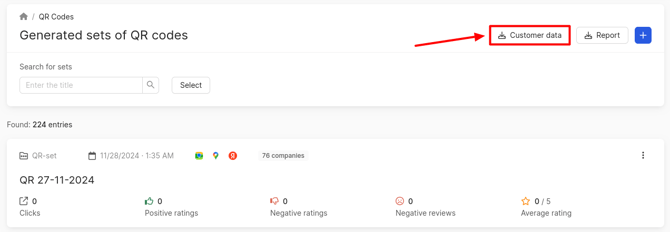 To export customer data who left reviews via QR codes, click on Customer Data. A .xlsx file will be downloaded.