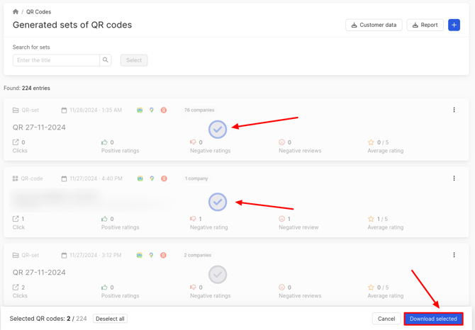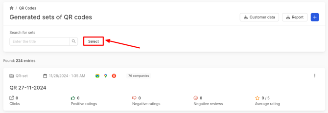 You can download several sets of QR codes at once. To do this, click on the Select button.