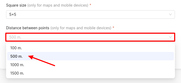 Next, specify the grid size, i.e., how many points will be displayed on the map. You can see how this is displayed on the map on the right side of the page.