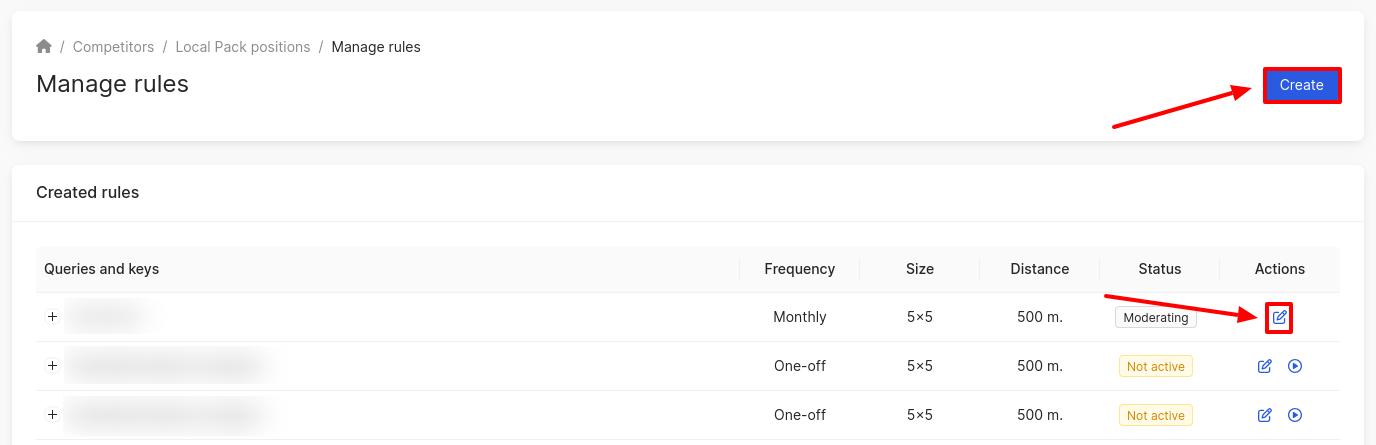 After filling in all the fields on the rule creation page, click on Create. The rule will be created after moderation.