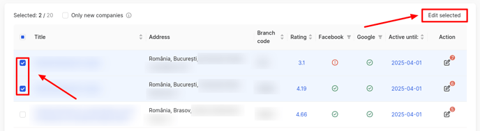 - Select companies to edit the data. You can select several companies and massively edit information in them, for instance, change the opening hours, payment methods or logo.