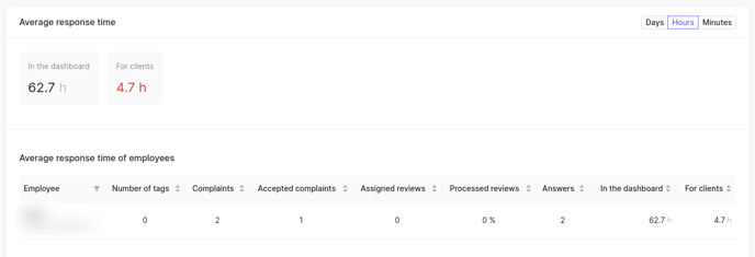 In this block, you can find out the average response time of your employees in the personal account and for the client: