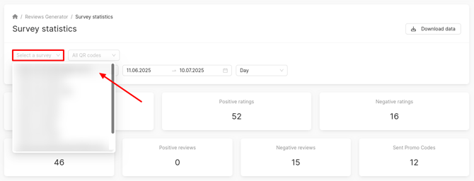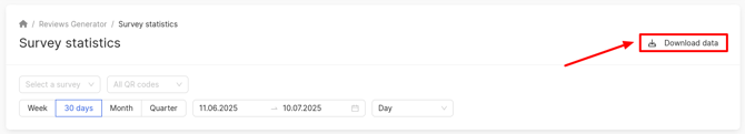 To export statistics by surveys, click on Download data in the upper right corner of the section.