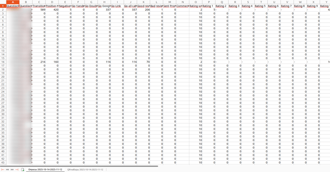 - For the 5-point scale, fields with ratings from 6 to 10 will be marked with dashes. If the company did not receive any rating from 1 to 5, these fields will contain 0.