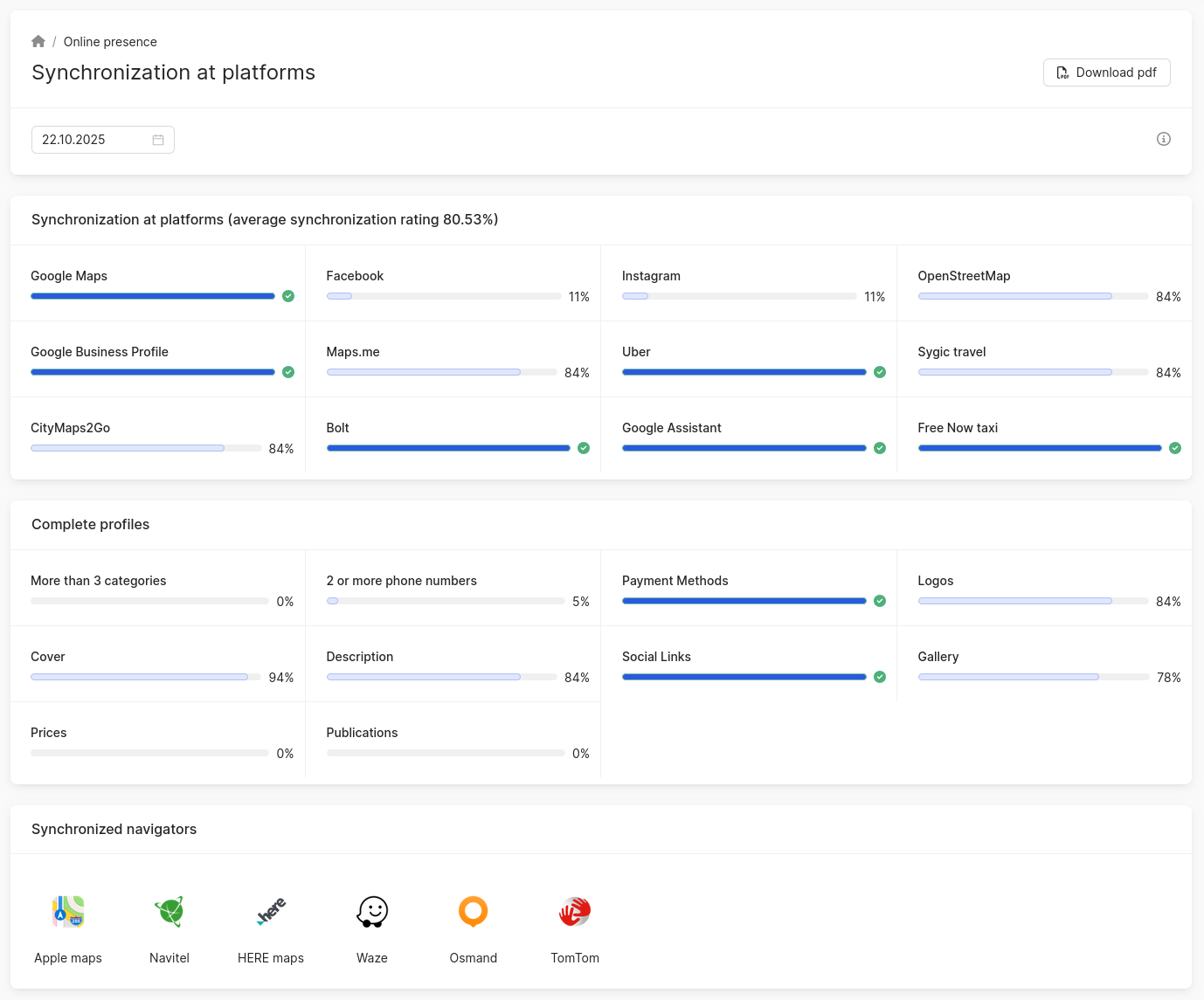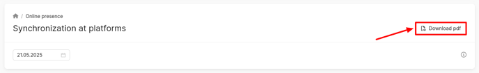 To open this page, click on Online presence in the menu and choose Synchronization at platforms.