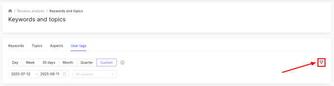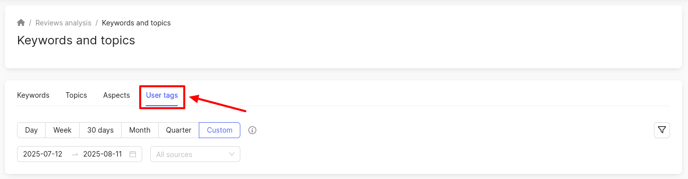 To access the section for analyzing custom tags, in the menu, click on Review Analysis and select Keywords and Topics.