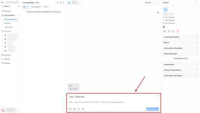 When you receive a message, simply open the conversation and reply in the chat block. Your response will be delivered to the client via their original channel — whether it’s email, WhatsApp, or another platform.